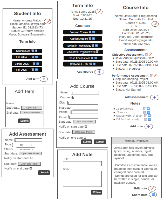 Organize your terms, courses, assessments, and notes with cloud synchronization across all your devices